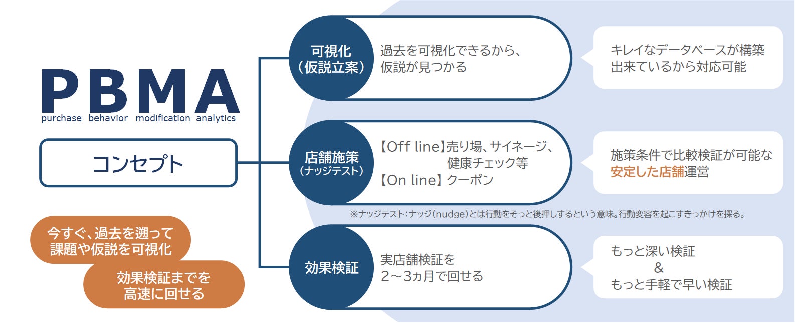 売り場や販促も見える “データ分析基盤” の構築により、小売の施策(介入)を効果検証する “薬王堂PBMA” を開始。