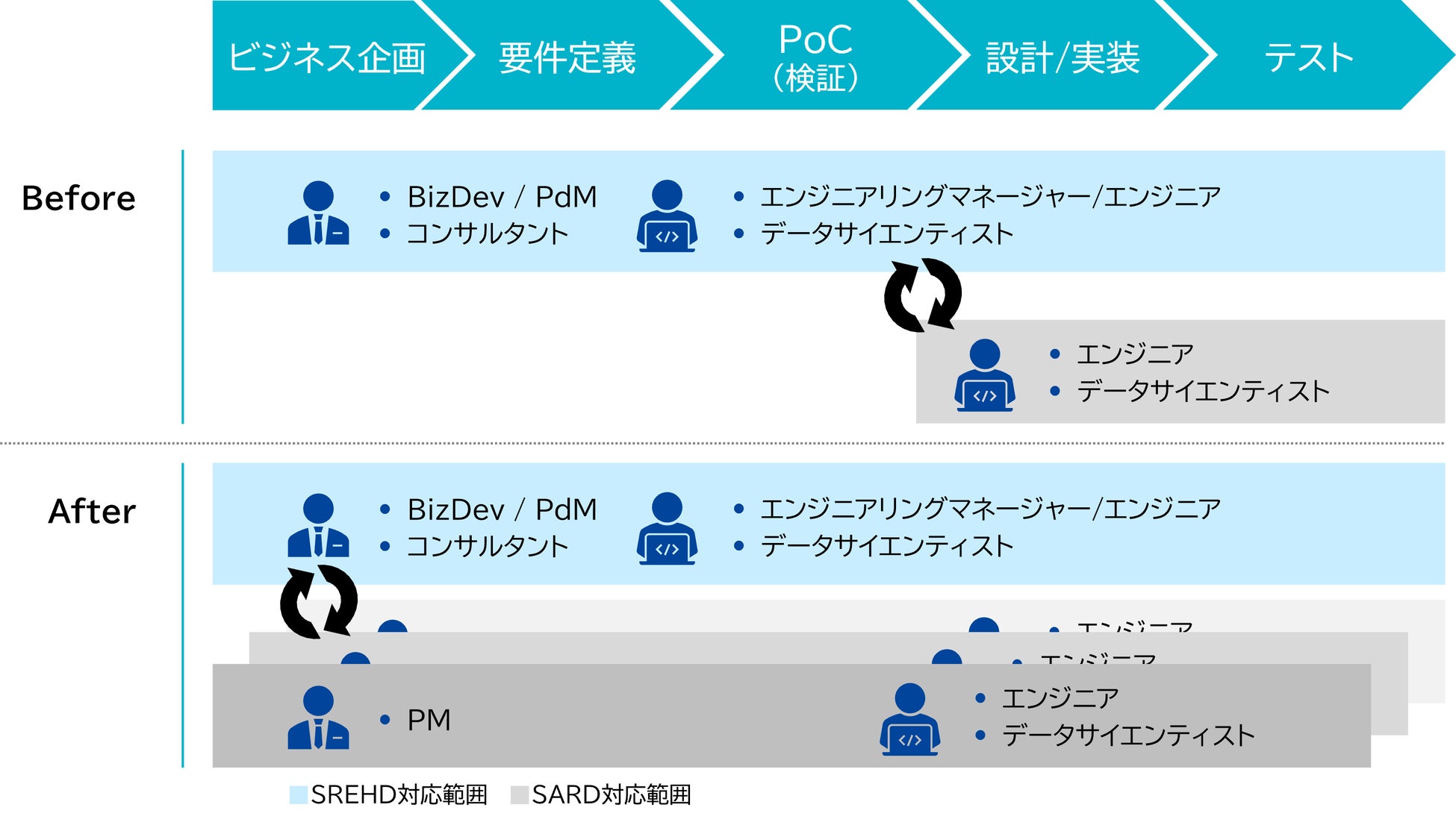 このたび、SARD内にSREHD向けのPM Expert Groupを組成することで、ビジネス企画からシステム開発までの一連のプロセスを包括的に連携対応可能とするとともに、対応プロジェクトの件数や規模も拡大可能とする戦略的連携強化を両者で合意しました。