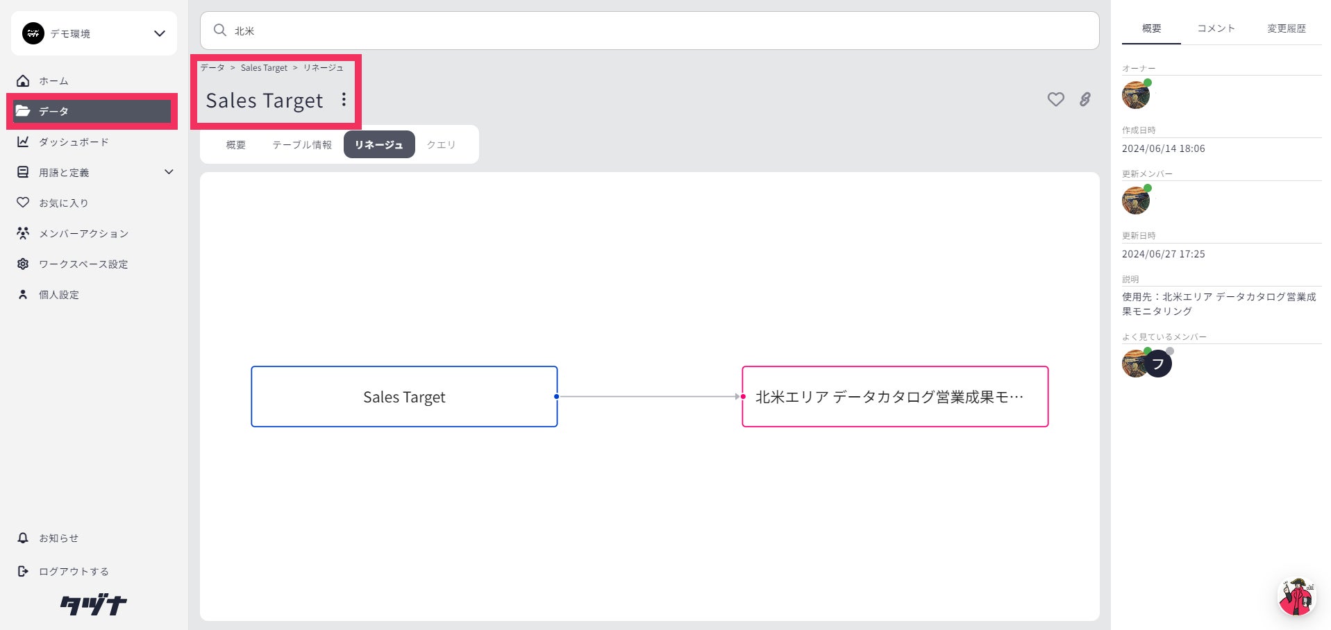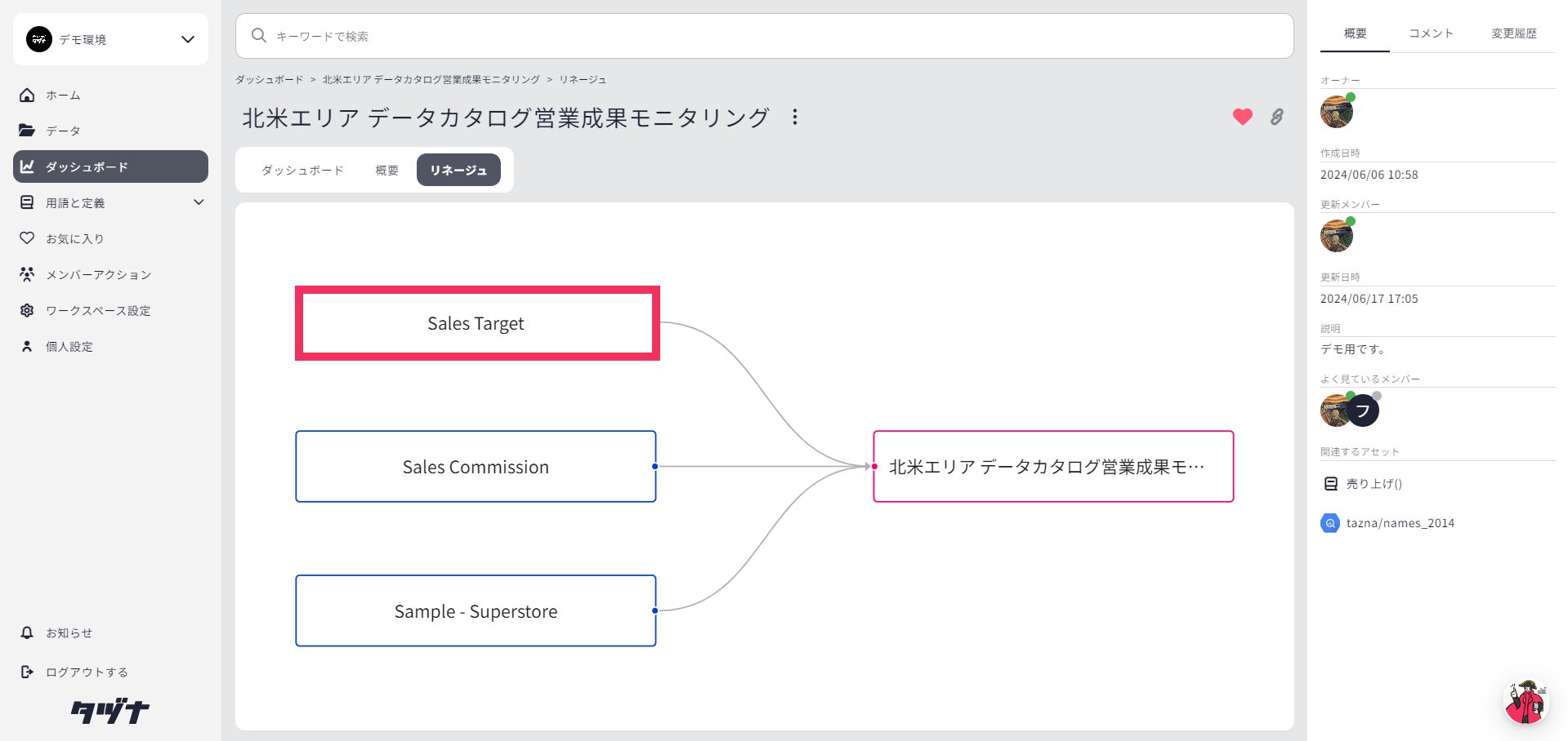データカタログの中心的な機能である「リネージュ」をアップデートしました。閲覧しているダッシュボードを構成しているデータソースをワンクリックで、詳細が確認できようになりました。