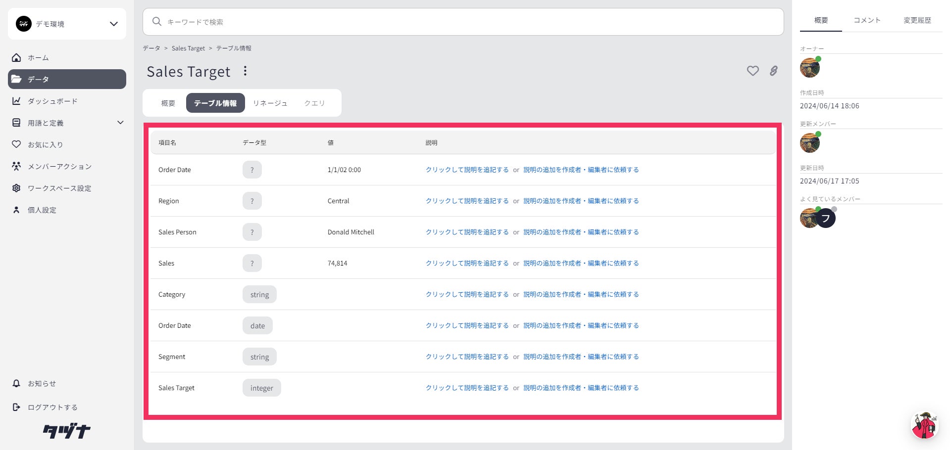 「タヅナ」は、データのサイロ化や属人的な業務を防止し、攻めのデータ管理を推進するデータカタログです。