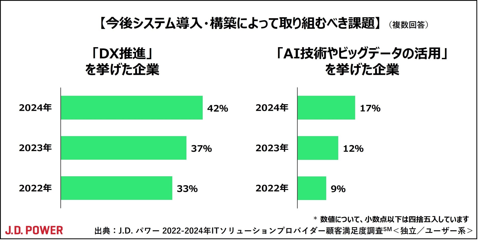 ITソリューションプロバイダーからDXやAIに関する提案/情報提供を受けた企業の満足度が向上